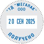 Диаметр поля: 30 мм, высота шрифта даты: 3 мм. Штемпельная подушка: синяя.